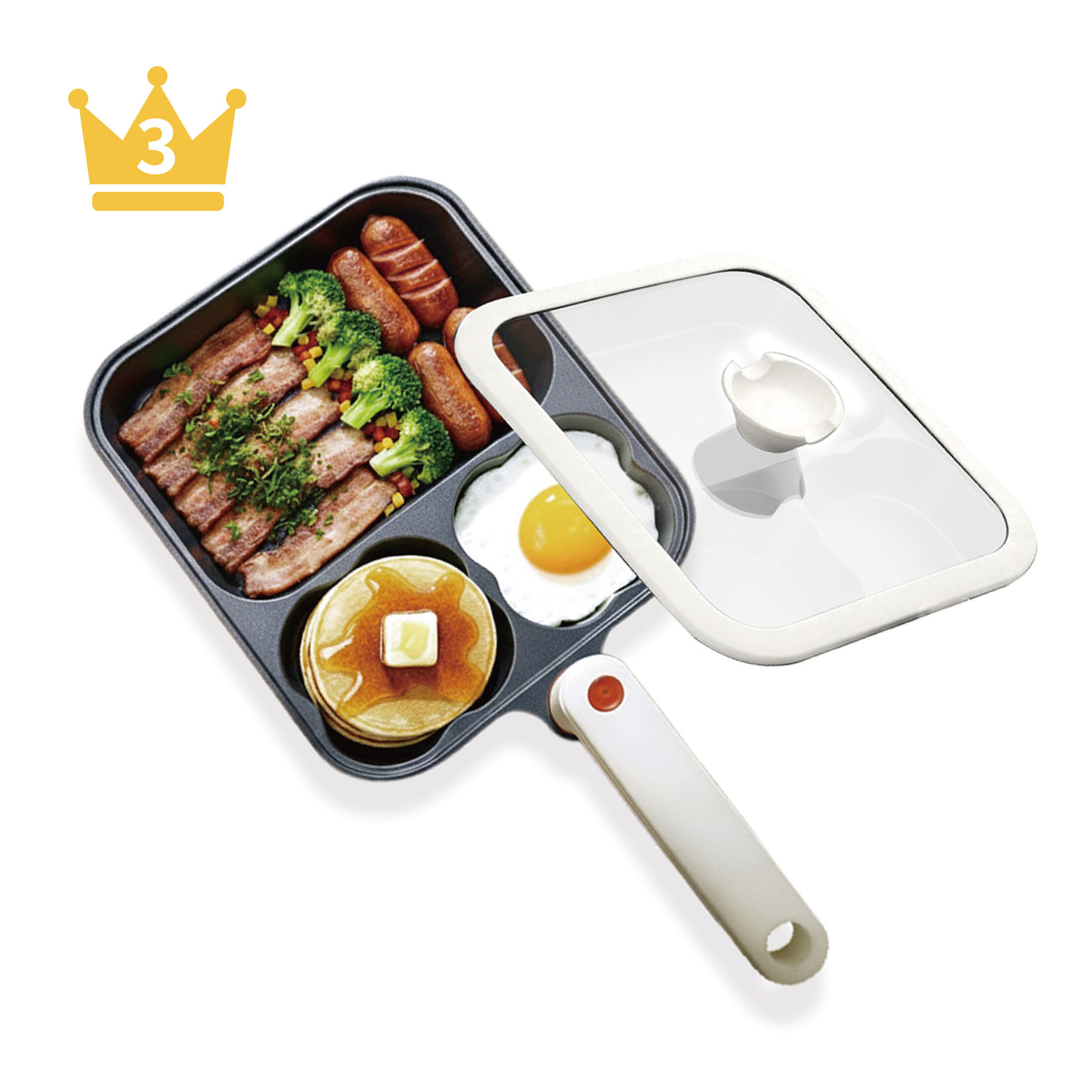 《DASHIANG》三味日和|分隔巧煎鍋 ╴以陶瓷不沾塗層與三格設計,讓料理更輕鬆、清洗更省心。導熱快速、受熱均勻,搭配輕量化與透明鍋蓋,讓你輕輕鬆鬆,同時完成多道豐富餐點。